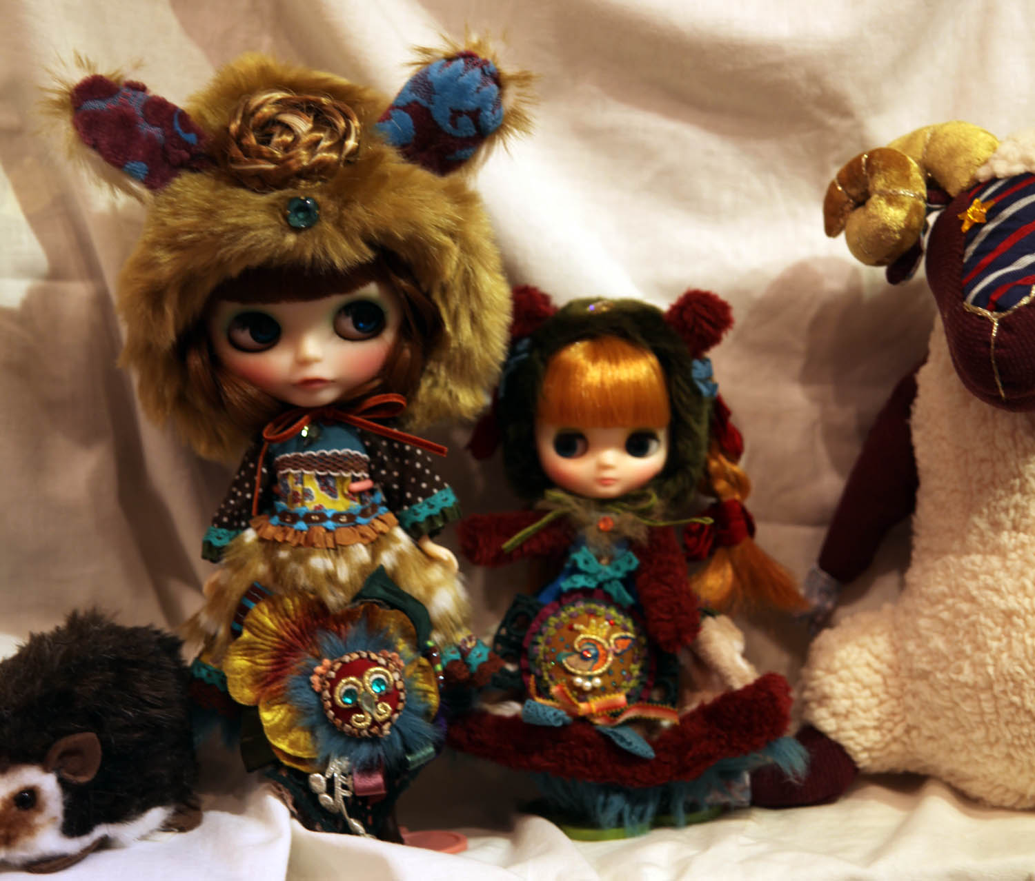 A couple of the items for sale at the Luvable & Hugable exhibition at Junie Moon in Daikanyama, Tokyo. Customized Neo Blythe and Middie Blythe.