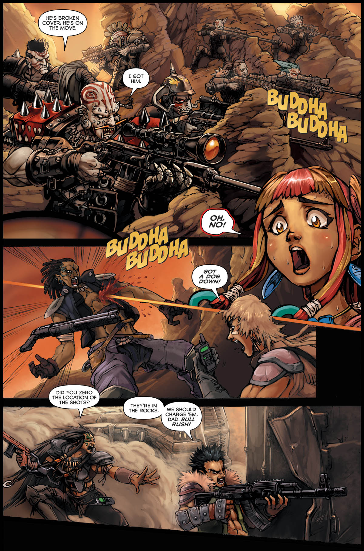 Not exactly a one-image pinup, but more a haiku-like summation. This page is a mashup of panels from Issue#1, sort of like a non-linear “trailer.”
