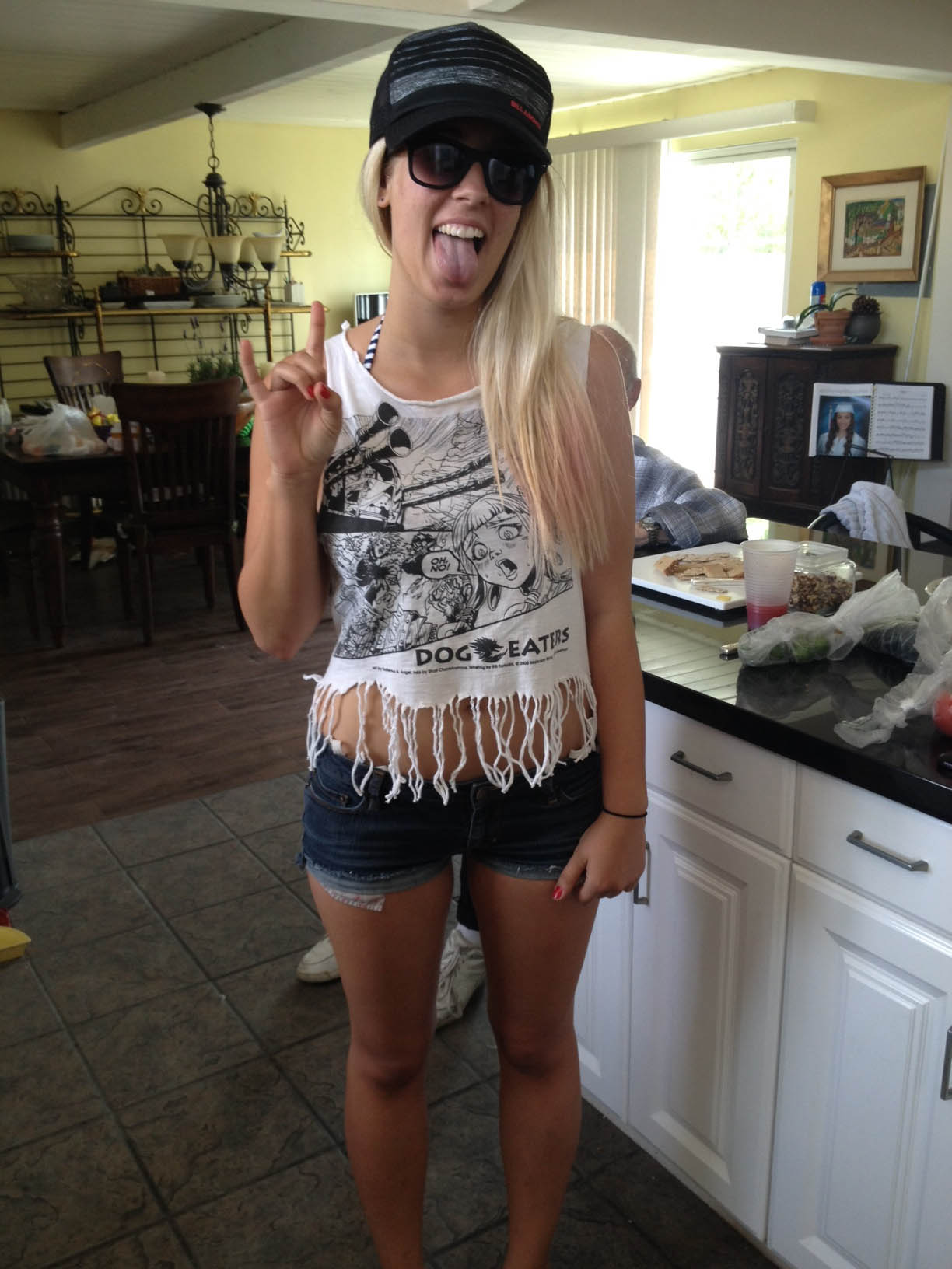 Victoria Martin rocks her customized Dog Eaters t-shirt. Victoria is the daughter of Dey Martin, Founder/CEO at mTraks, Inc. In addition, he’s a custom ukulele luthier.