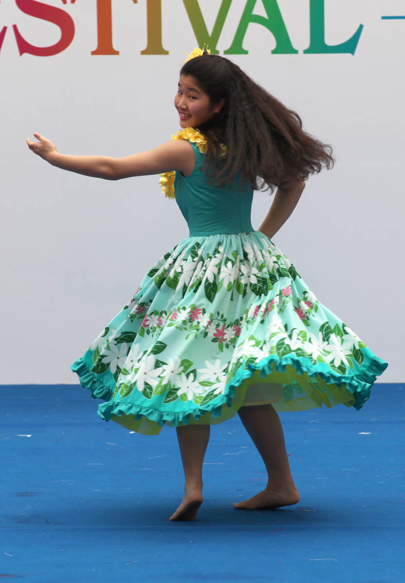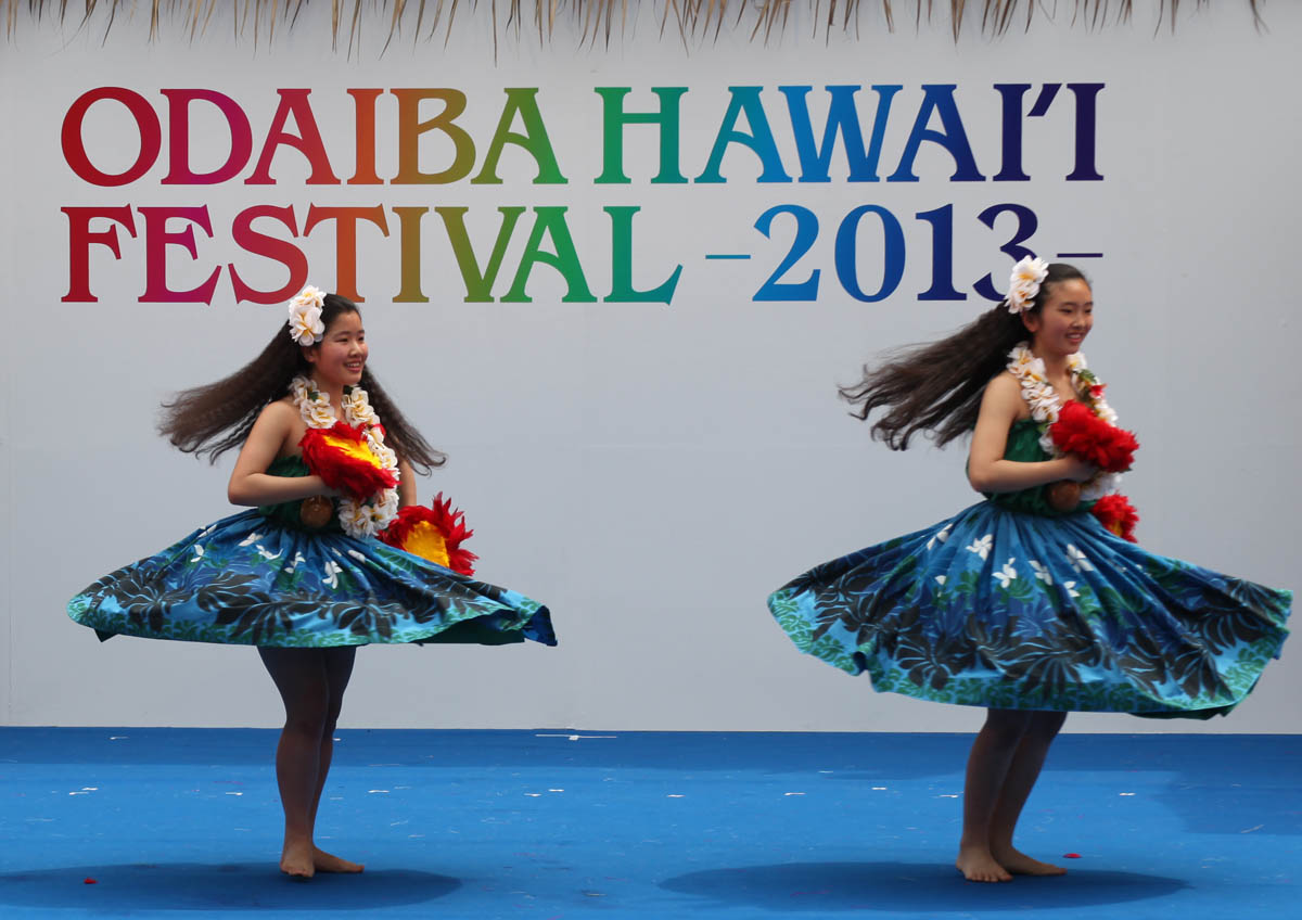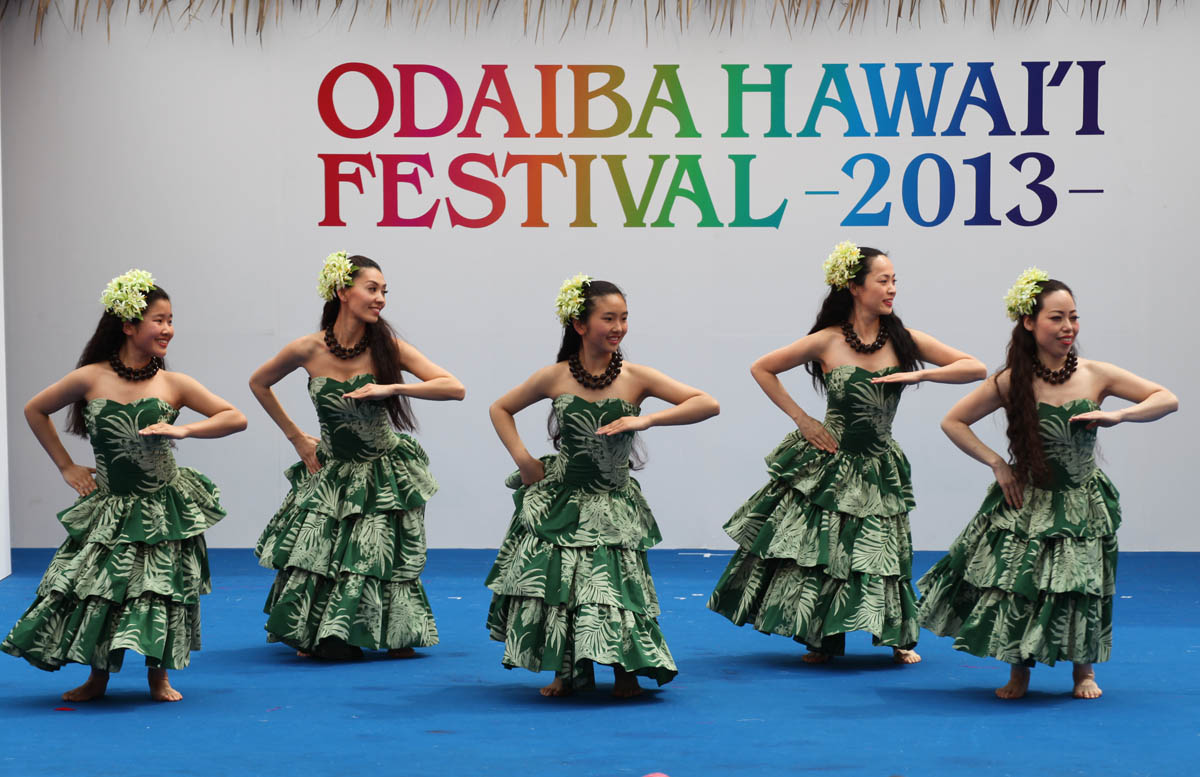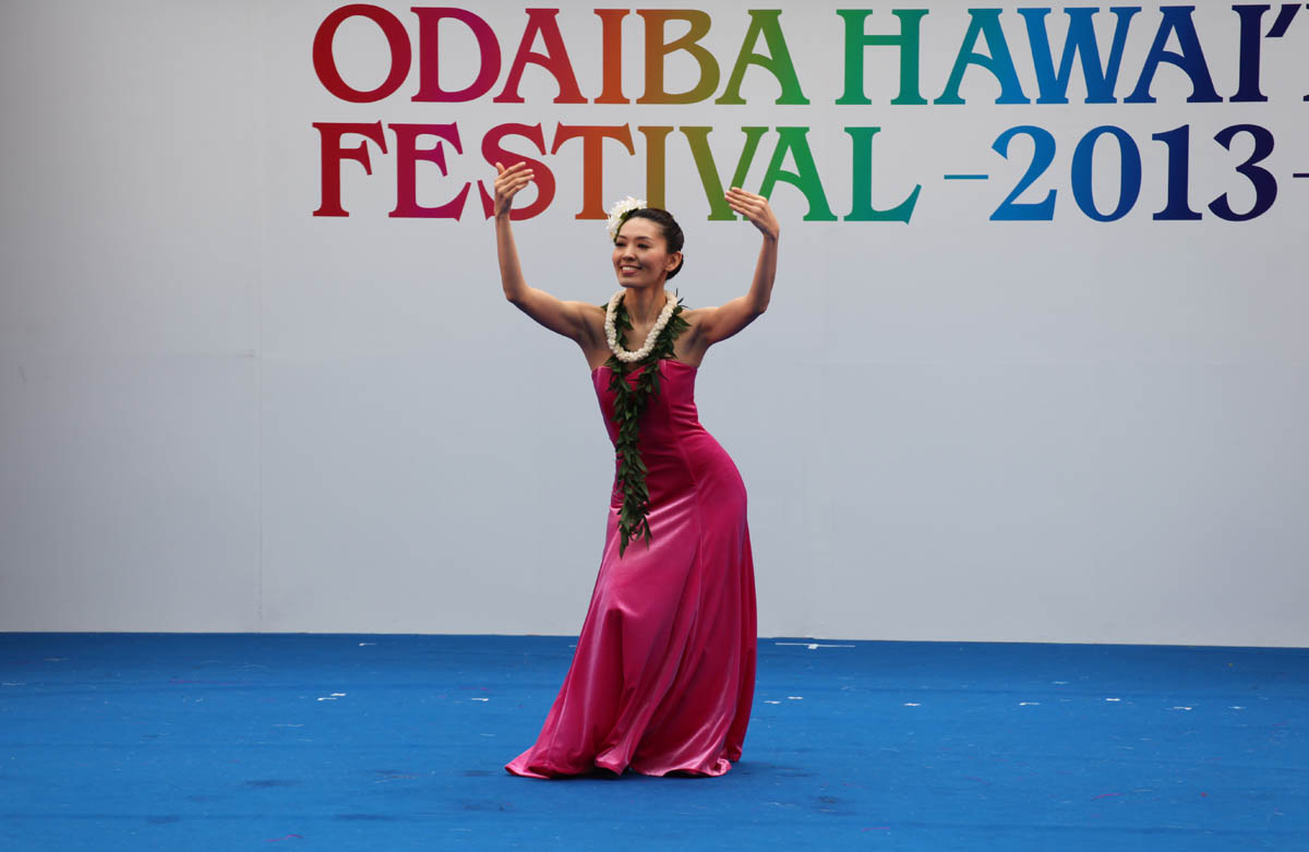 Kumu Hokulani Holt chanted to open the performance at VenusFort, Odaiba, Tokyo.