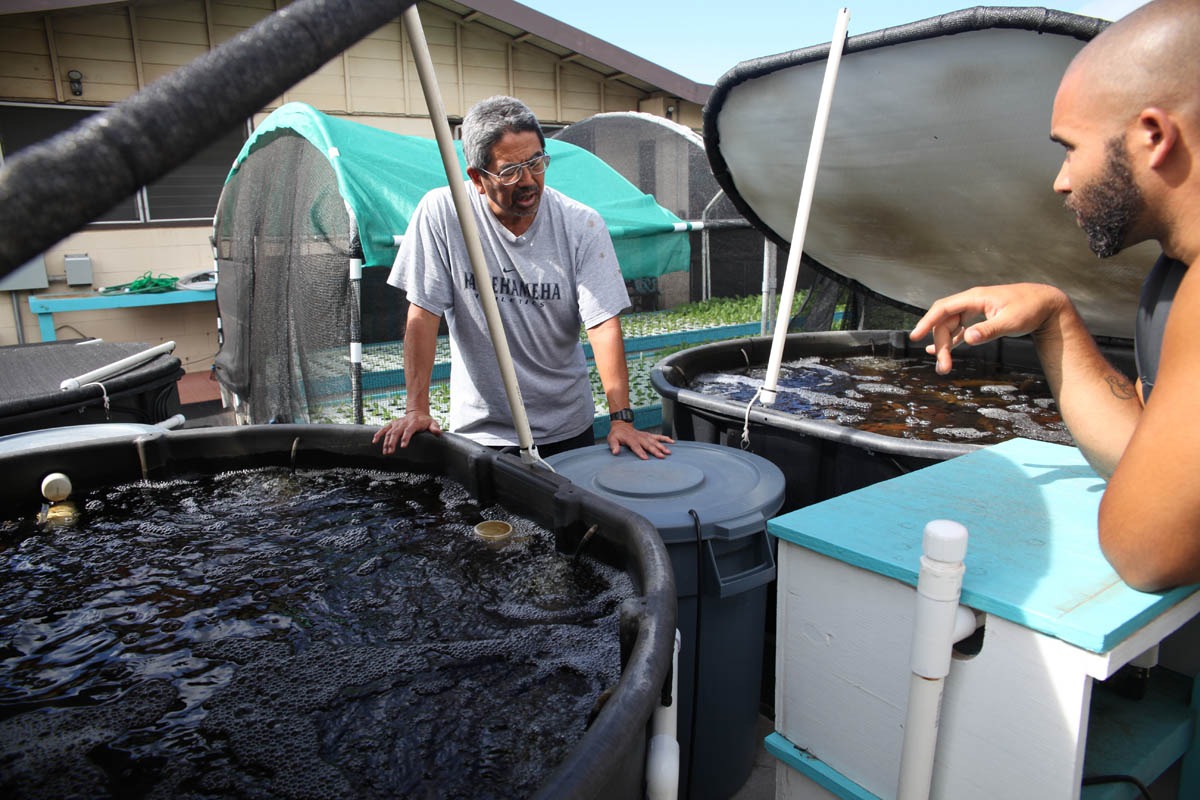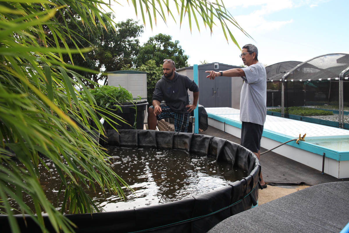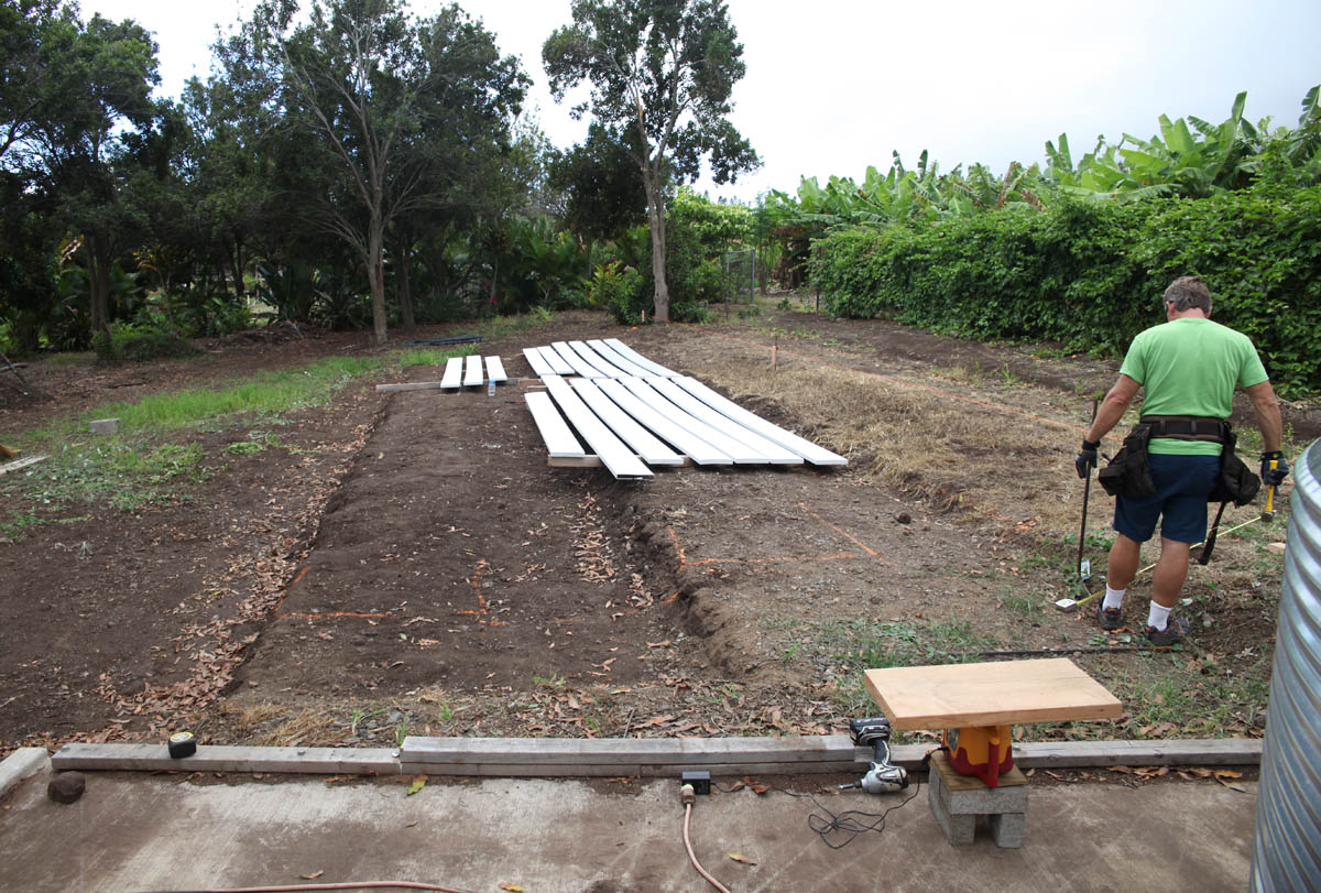 In lieu of starving if the status quo is not maintained, Anekona is building a 1024 sq ft aquaponics system. We visited Aquaponics No Ka Oi in Kahului to see how Patty and Larry have been doing it for the past 3 years. Their system, No Ka Oi, is based around a 512 sq system, but there are a lot of “add ons,” like an ebb and flow bed, bio-filters, and the nursery.