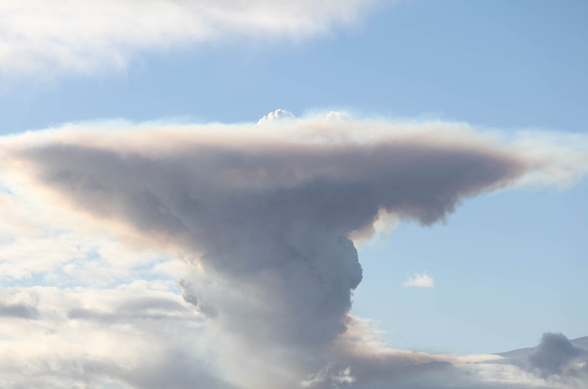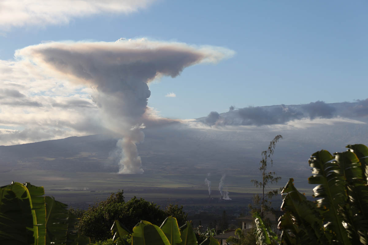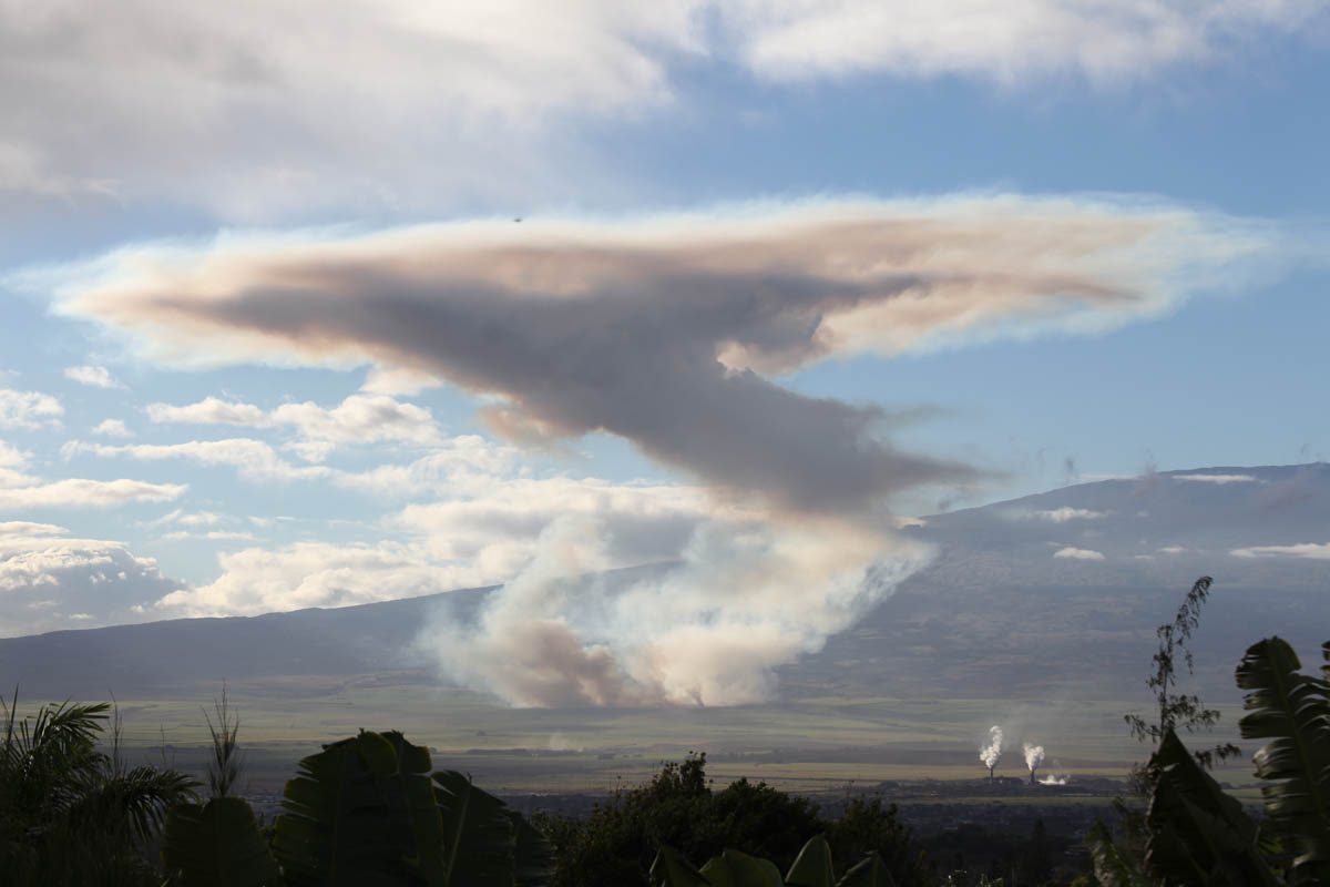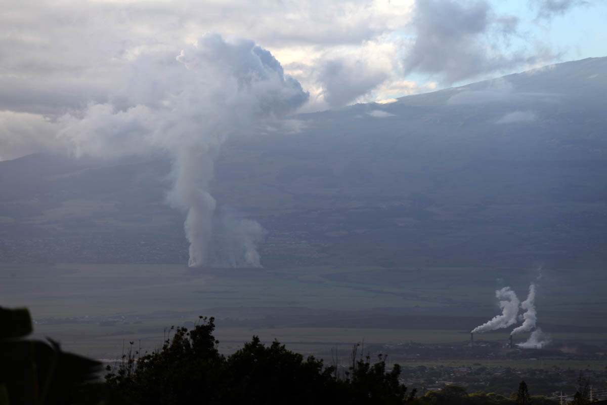 The smaller smoke on the right is the sugar mill and that little hill in the background is Haleakala with rises to over 10,000 ft. and forms more than 75% of the Hawaiian Island of Maui, which gives you an indication of scale.