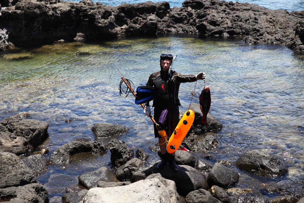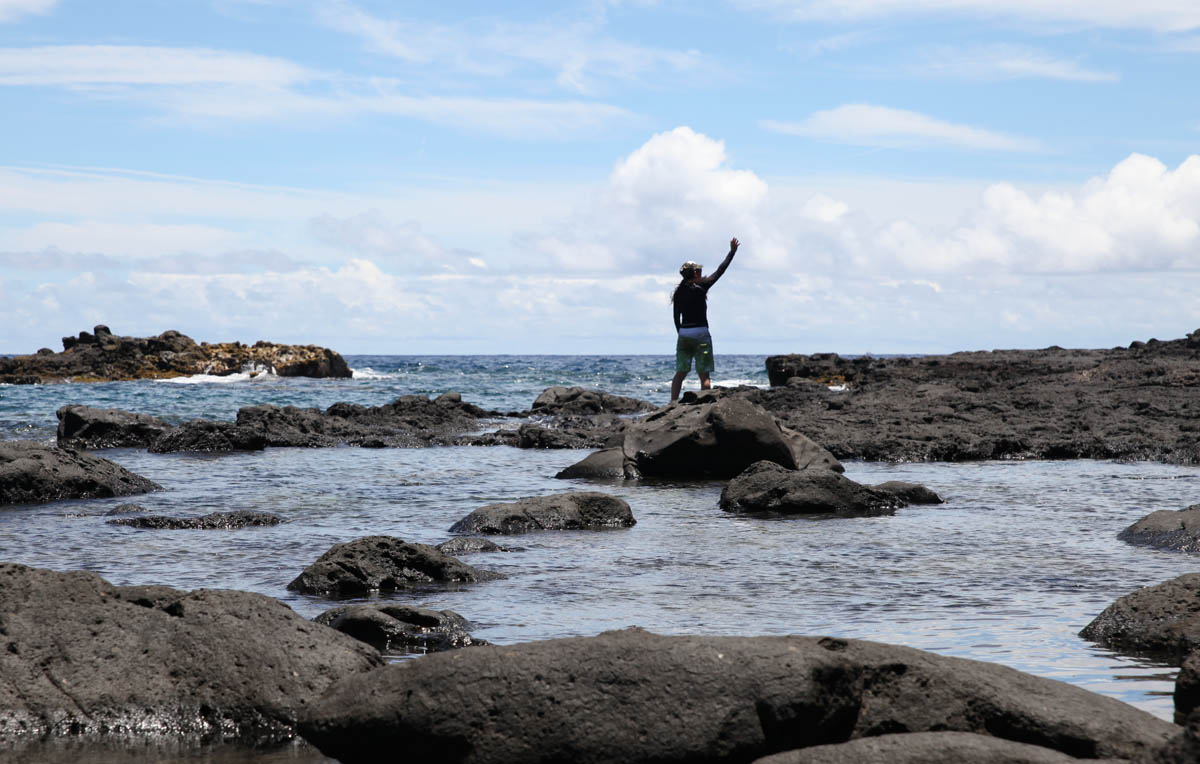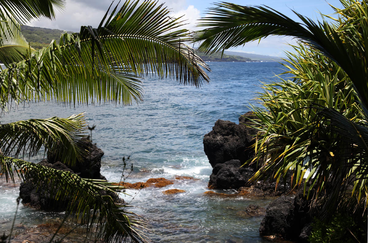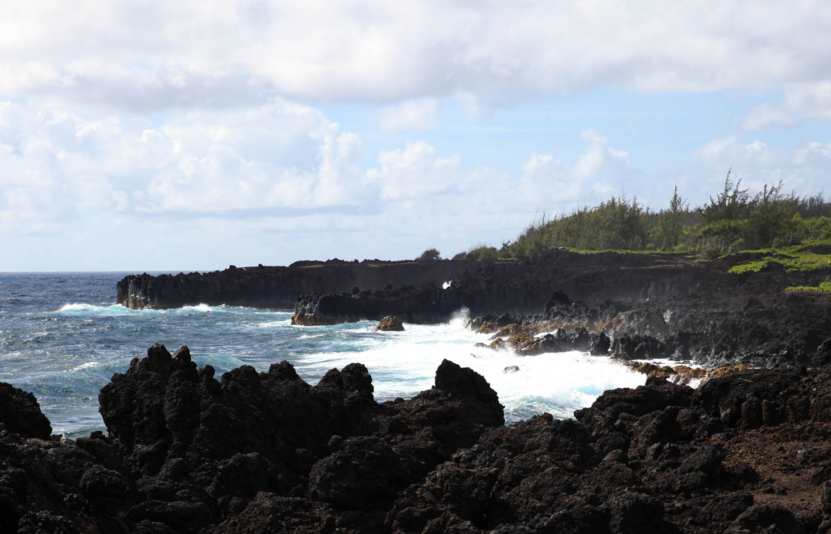 We washed off at Koki Beach, Keanae. That’s Alau Island off the coast.