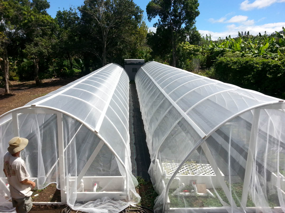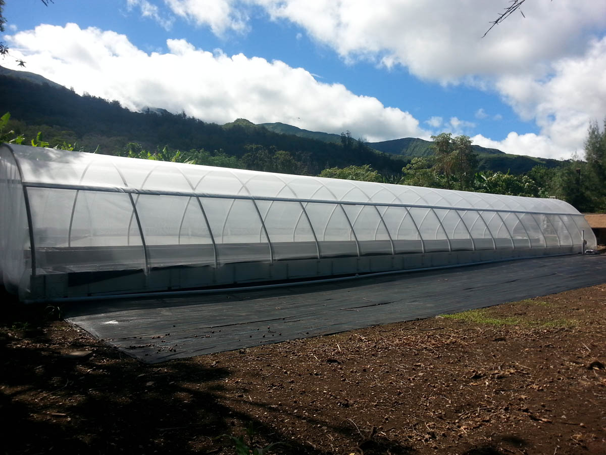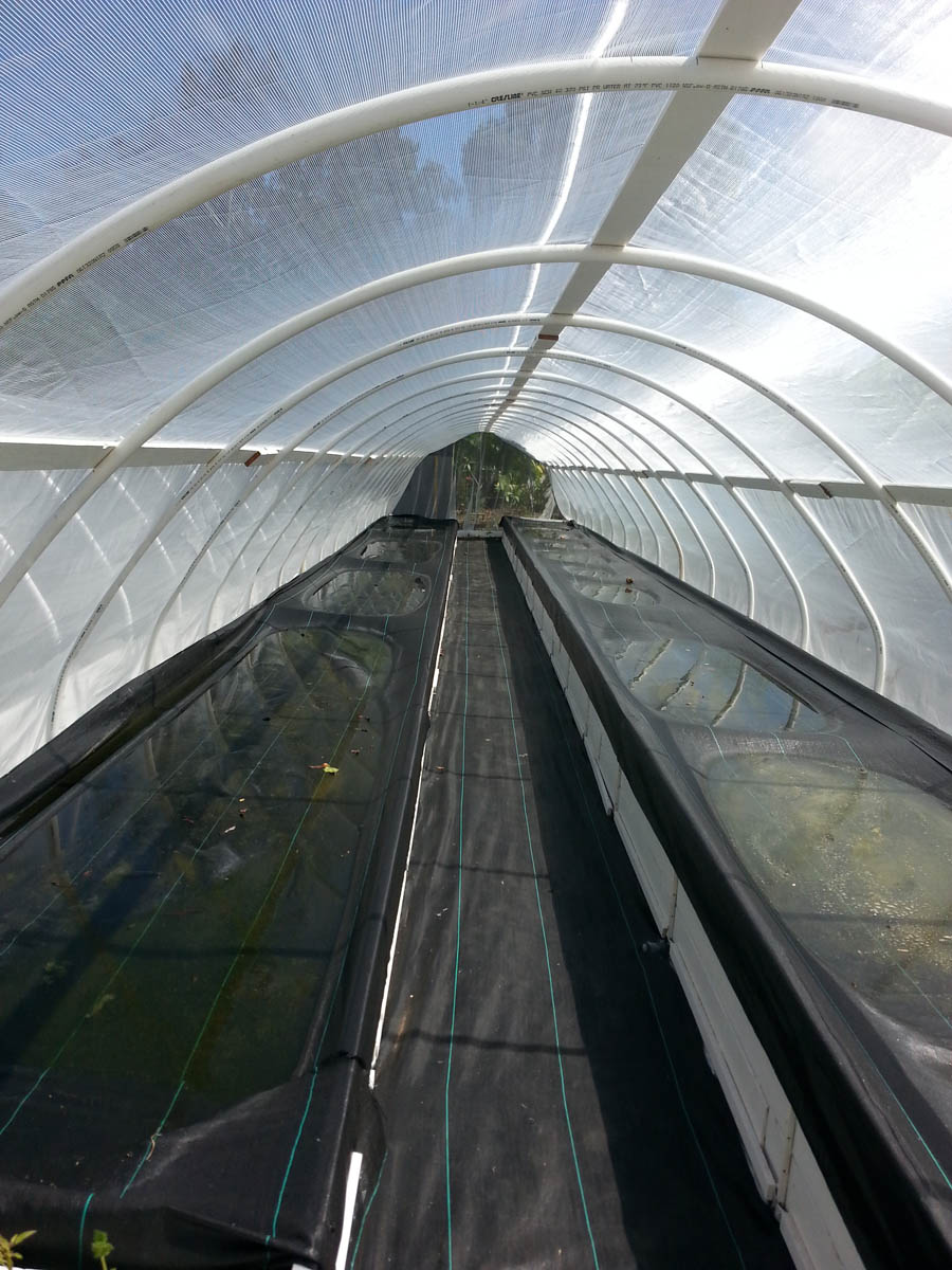 Troughs are still almost empty. The weed mat keeps the sun off the water to discourage algae growth.