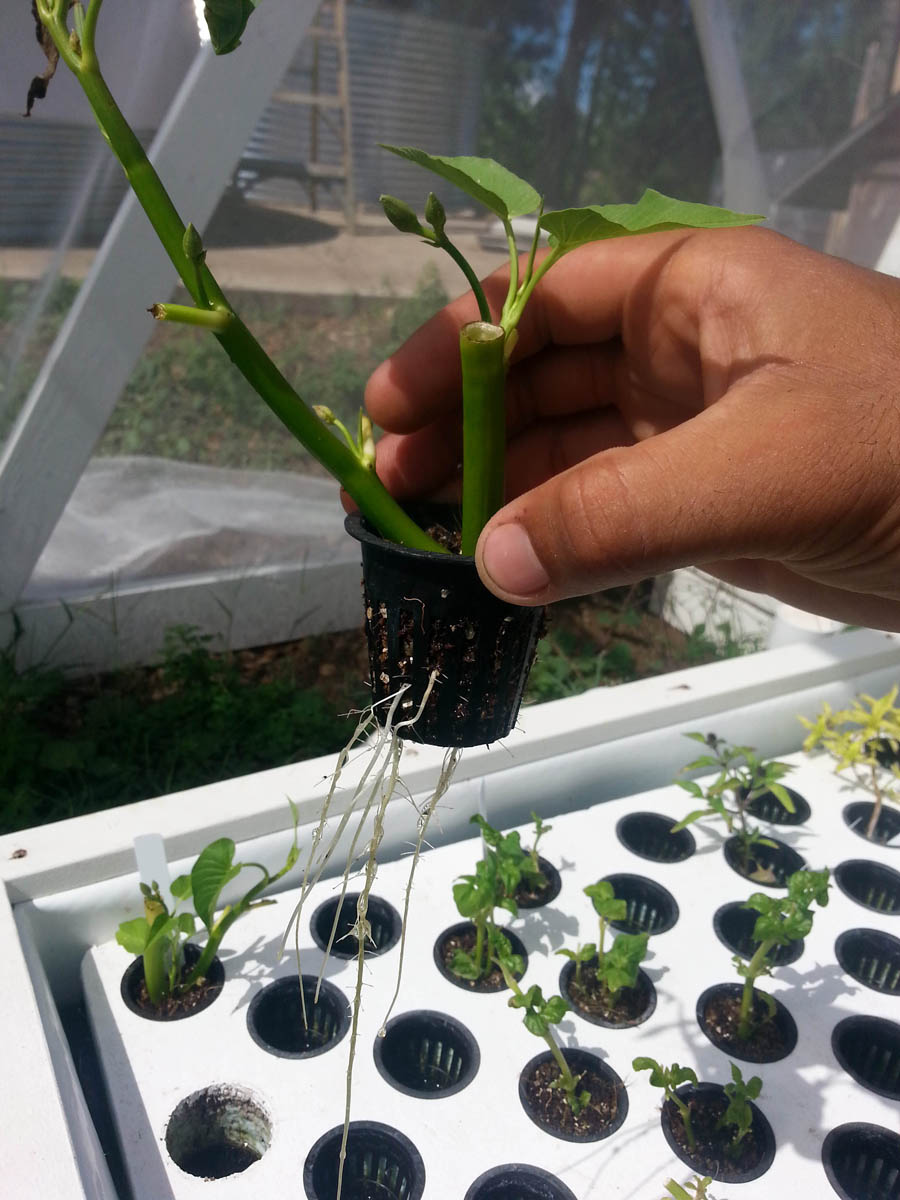 Roots of control vegetables: New Zealand spinach, water spinach (Ong choy), and peppermint. They have been in for one week.