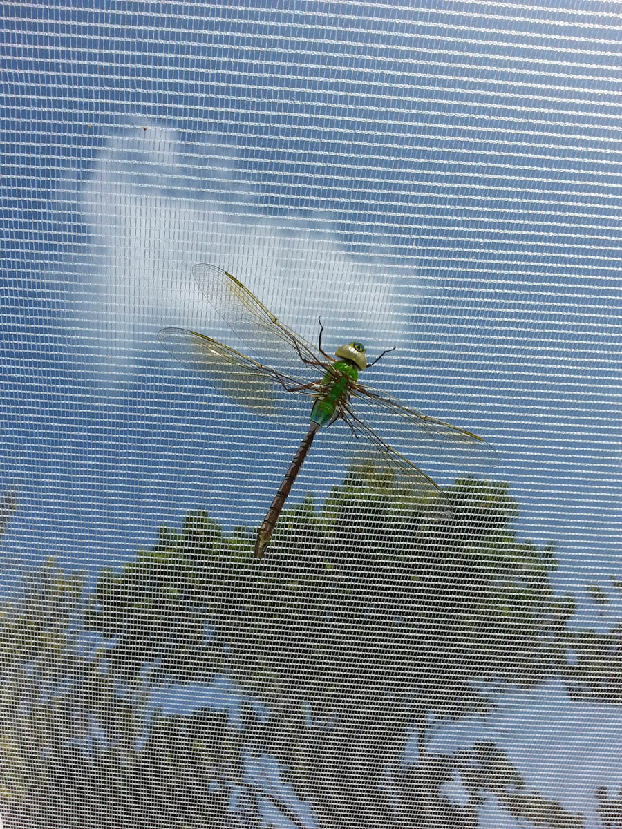 Dragonflies eat mosquitoes in water and air. With the guppies, they have eradicated all the mosquitoes in the aquaponics area!