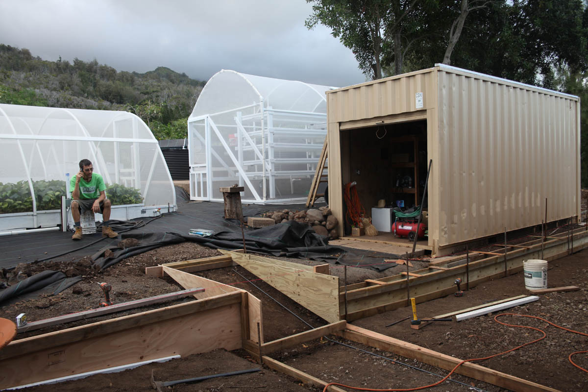Walter (deWalt) surveys the retaining wall and ramp forms.