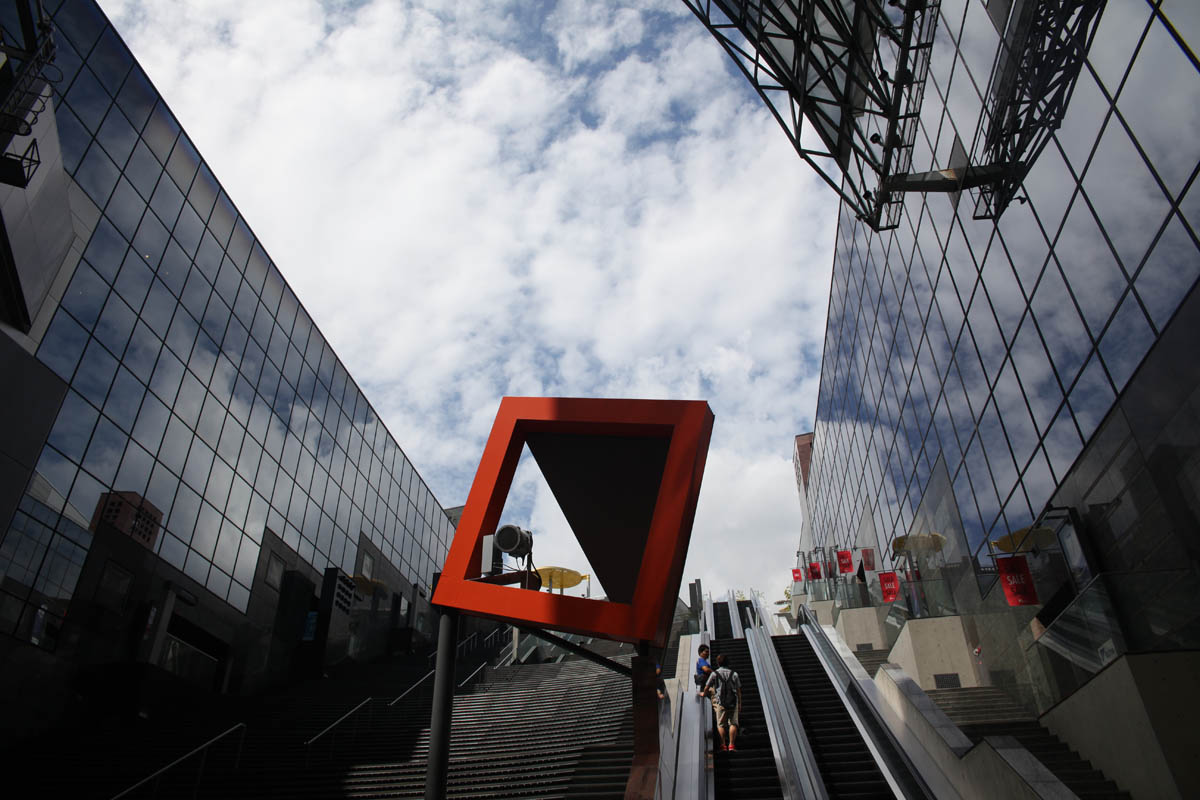 At the top of Kyoto Station, a magnificent building, you will find the “Happy Terrace.”