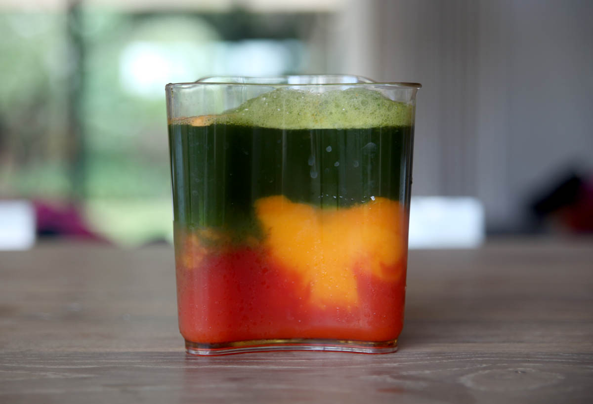 This watermelon, papaya, lilikoi, carrot, celery, lettuce juice replaced both breakfast and lunch.