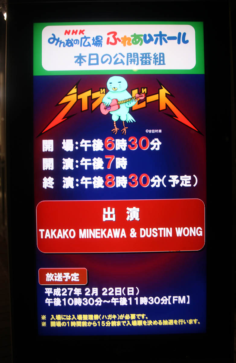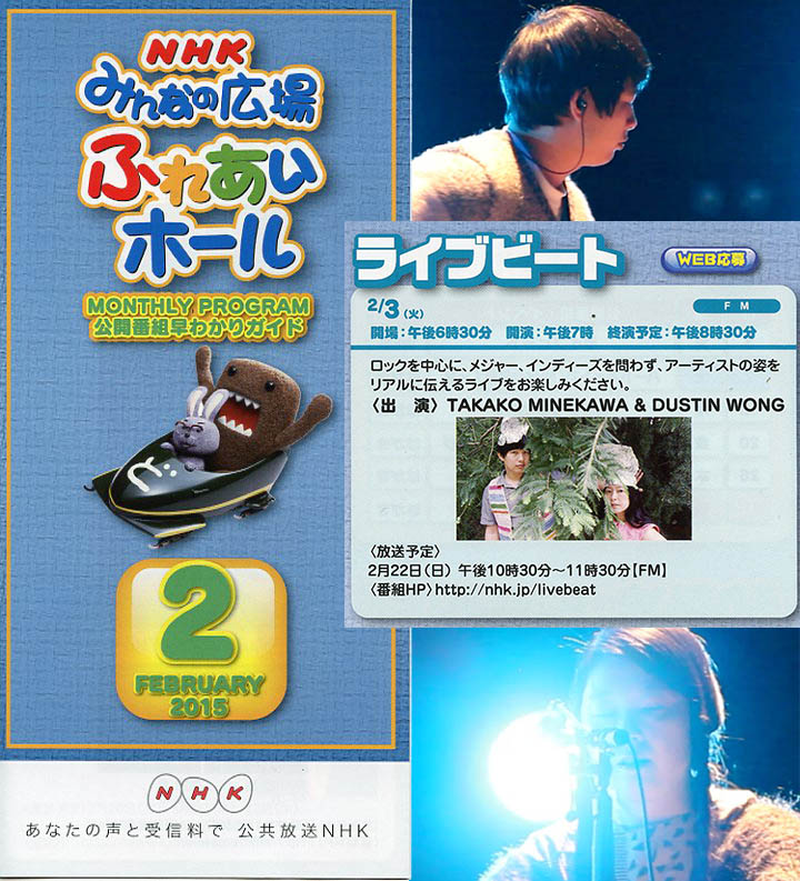 On Feb 3, Dustin and Takako played at Fureai Hall for Live Beat. This will be aired on NHK FM on Feb 22 from 10:30 ~ 11:30 AM.