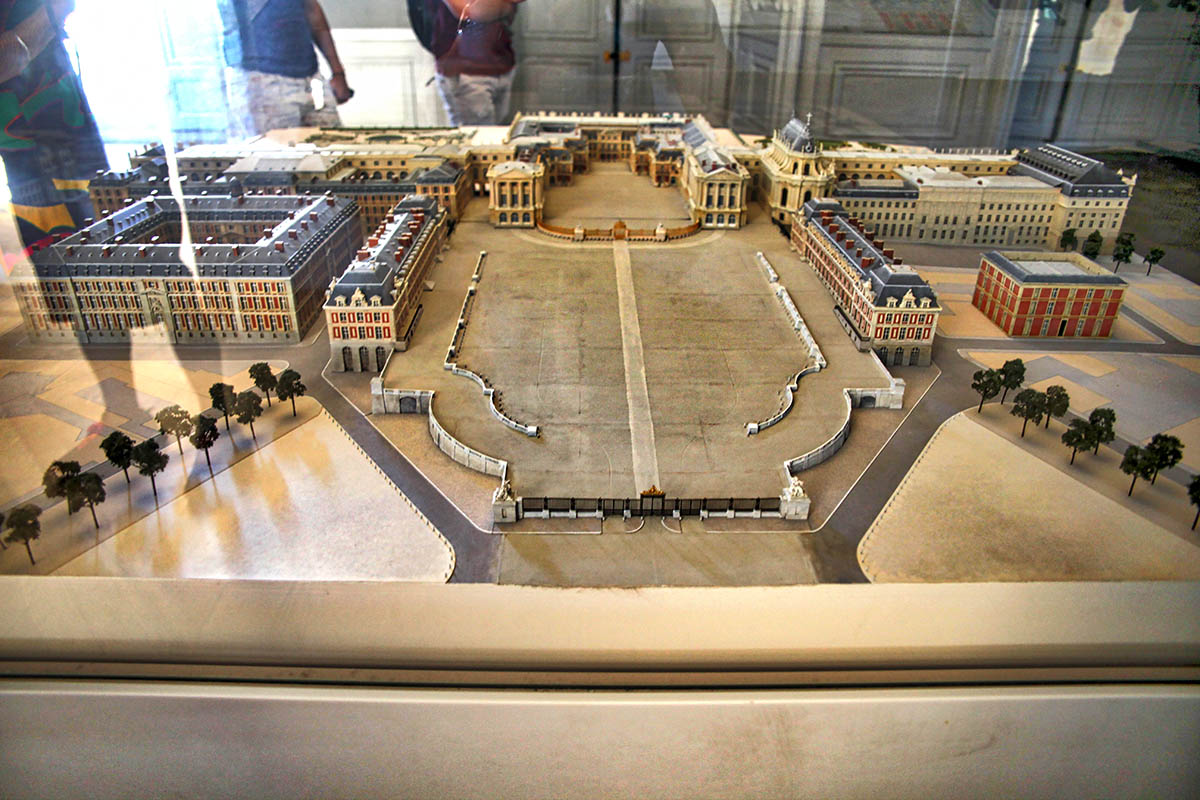 But wait there’s more. This model shows the expanse of Versailles but doesn’t include the Hameau, which was commissioned by Marie Antoinette in 1783. This was not just one or two buildings, but something like a village landscaped in the style of a British garden. Apparently the French populace was appalled by the cost. There were streams and miniature man-o-war and galleys on the lakes.