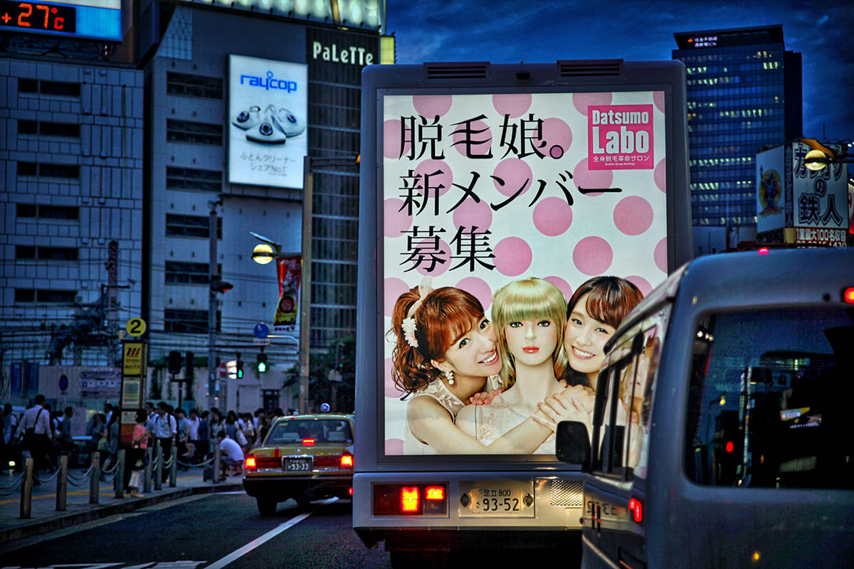They say they’re looking for “new members” for depilation but it’s so popular you can’t get an appointment. And of course the middle member is a doll who probably has no hair from her earlobes on down.