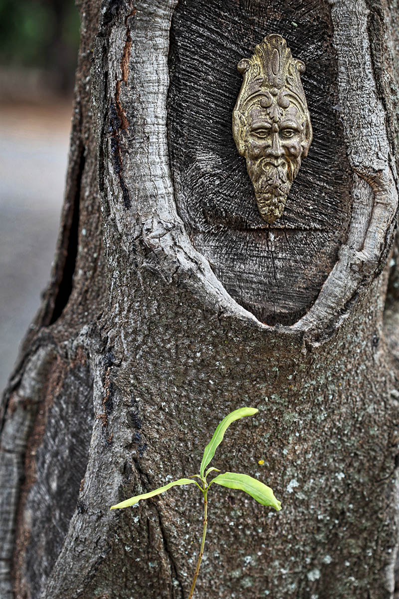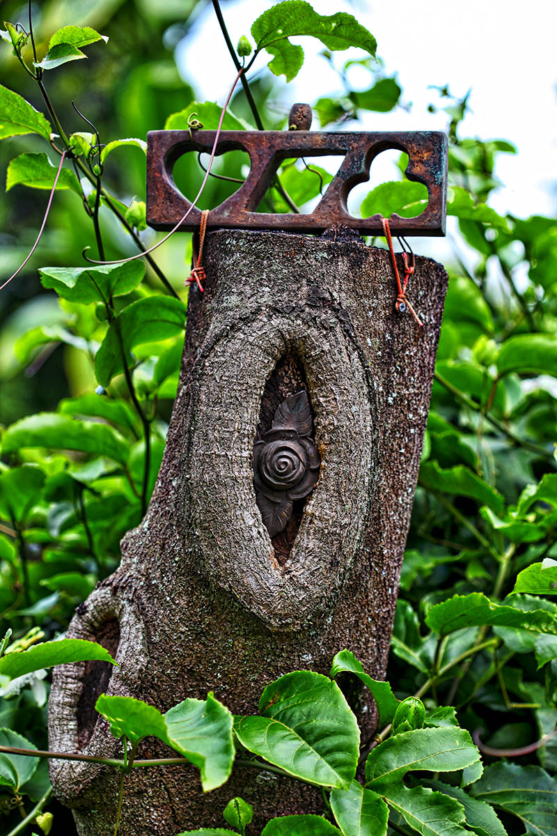There are mysterious sculptural artifacts placed in trees throughout the property.