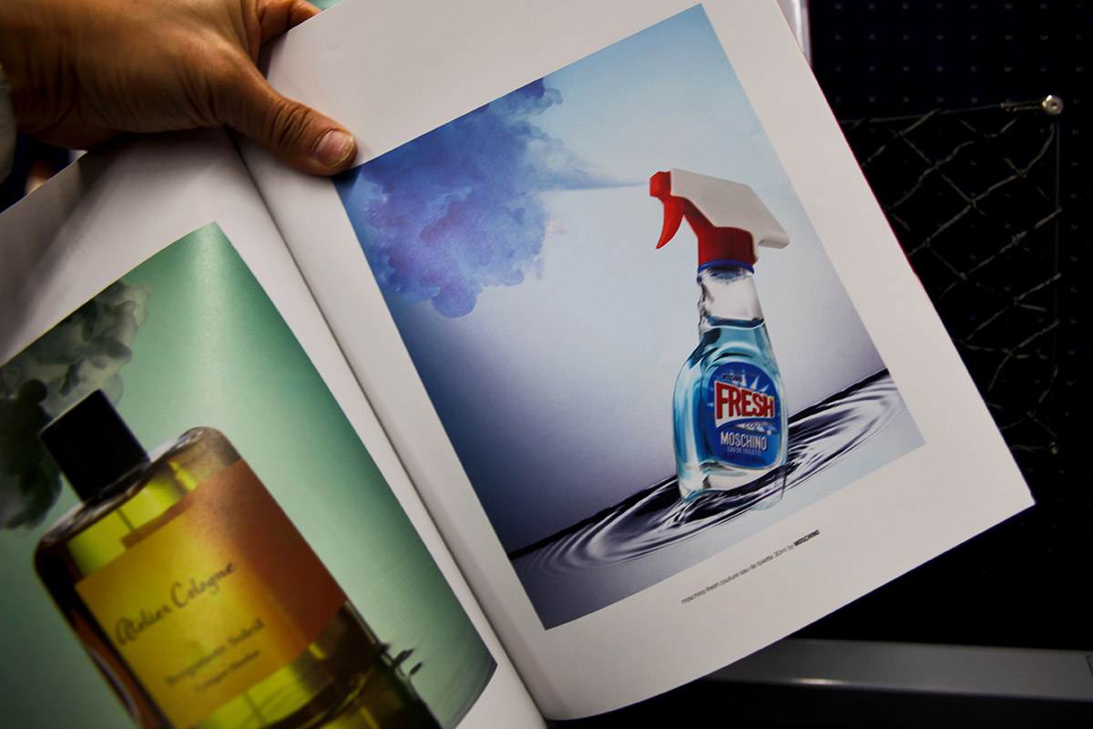 Like an airline, they had a magazine in the back of the seat. It was fun to see this Eau de Toilette in a kitchen spray bottle.