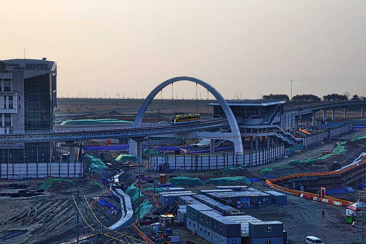 Incheon is an island, the infrastructure is new, neat, clean. Construction from the room window.