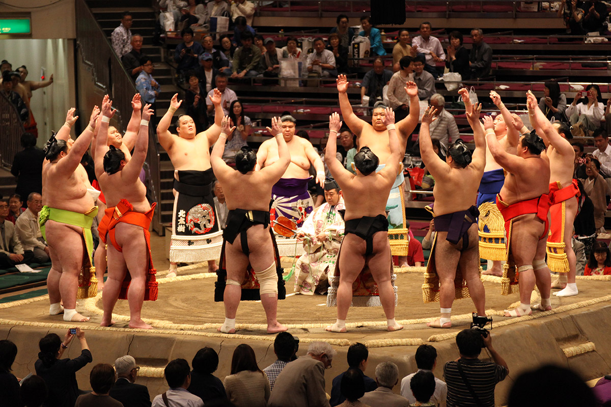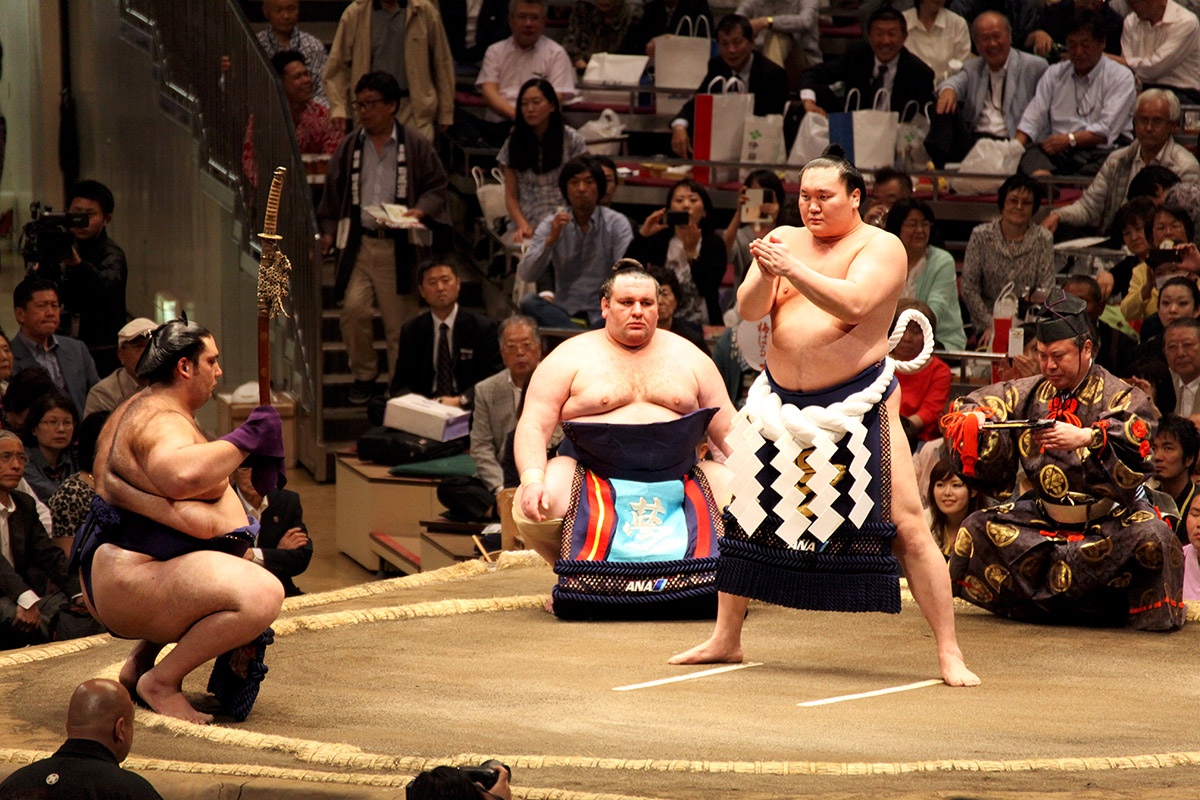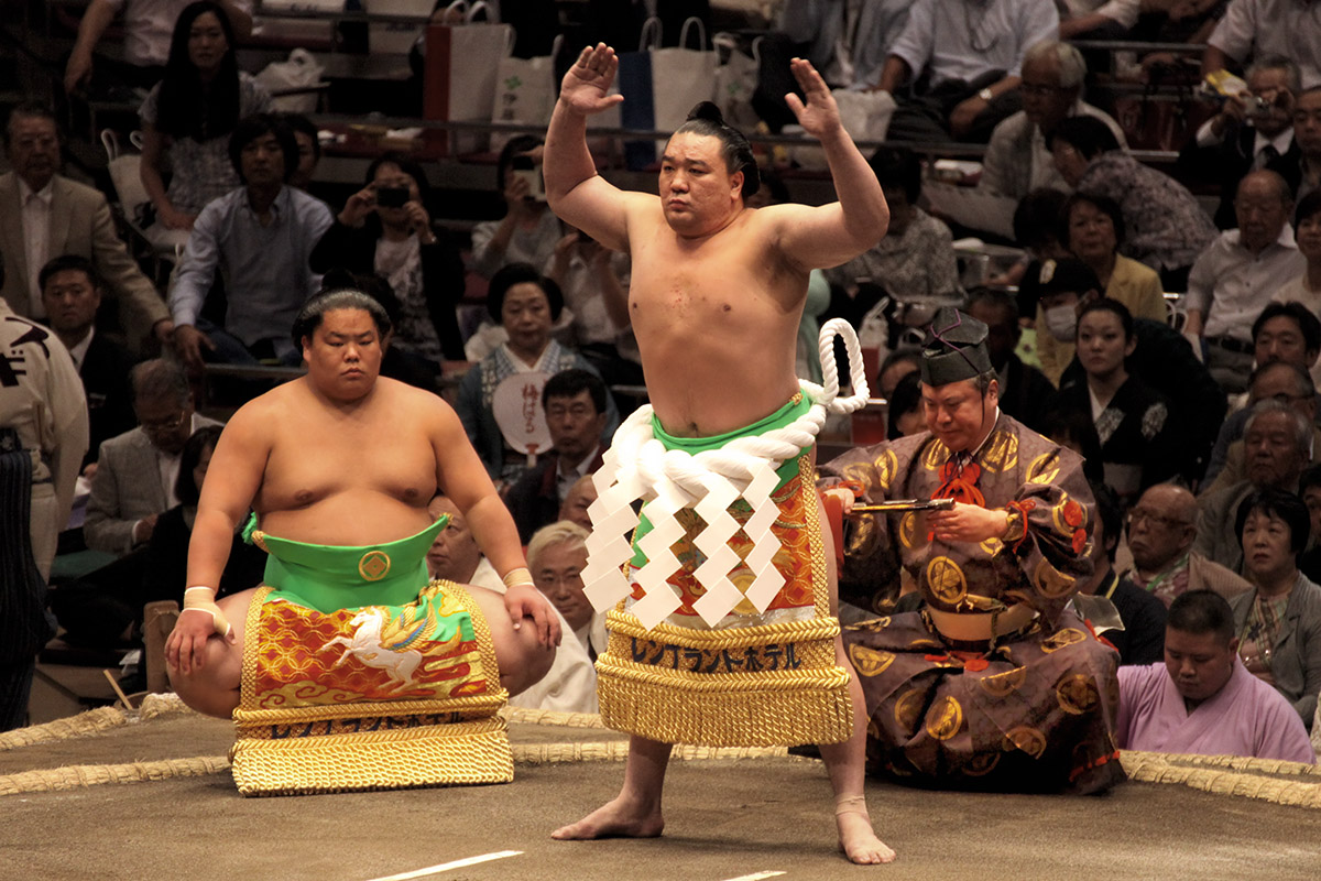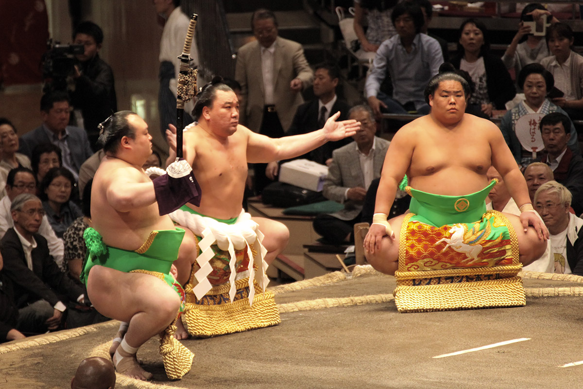 The Juryo entrance. Professional sumo is divided into 6 ranked divisions. Juryo is one level below Makuuchi, the highest division. Makuuchi is highest division of which the highest rank is yokozuna, followed by ōzeki, sekiwake and komusubi. There are typically 8-12 wrestlers in these ranks with the remainder, called maegashira, ranked in numerical order from 1 downwards.