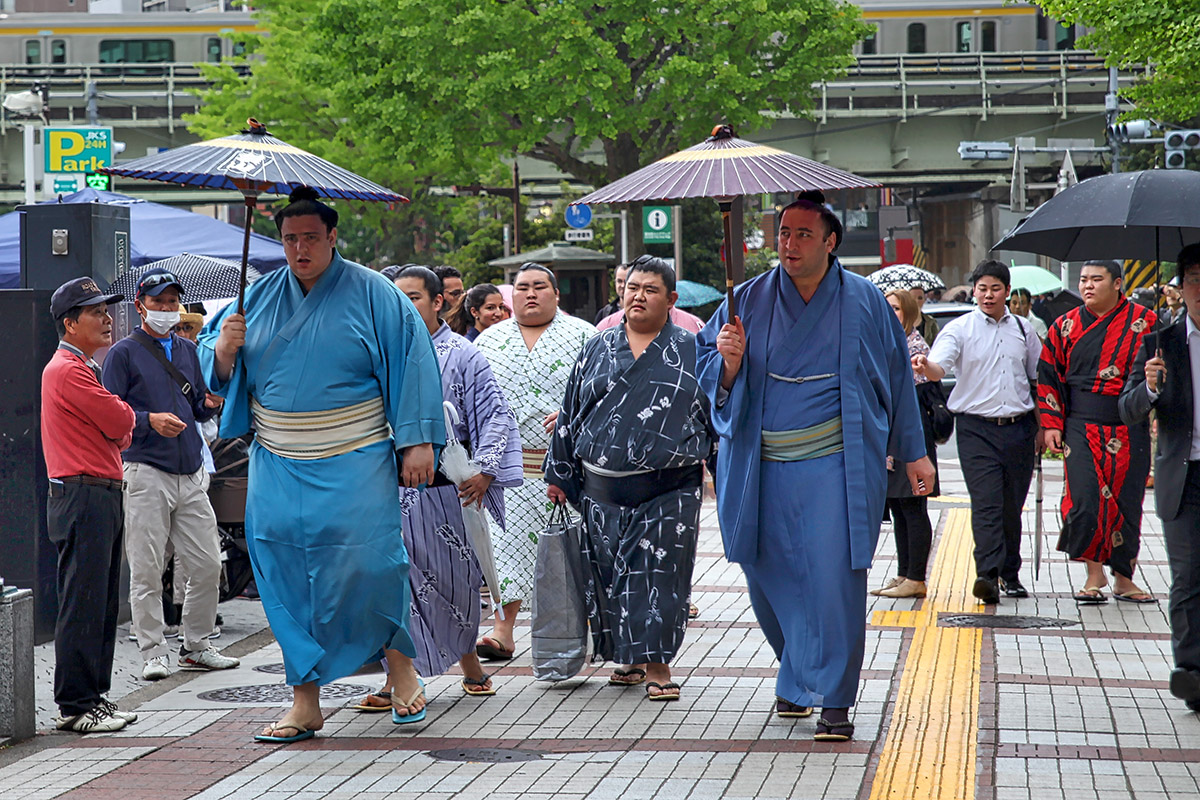 Ryogoku is a fun place to be when a tourney is on. Sumotori are everywhere.