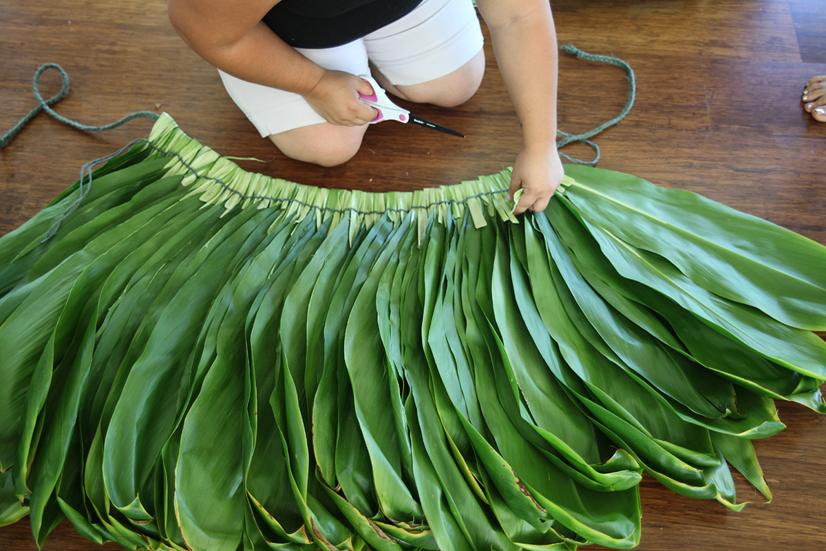 Making a ti leaf skirt is quite labor intensive and time consuming.