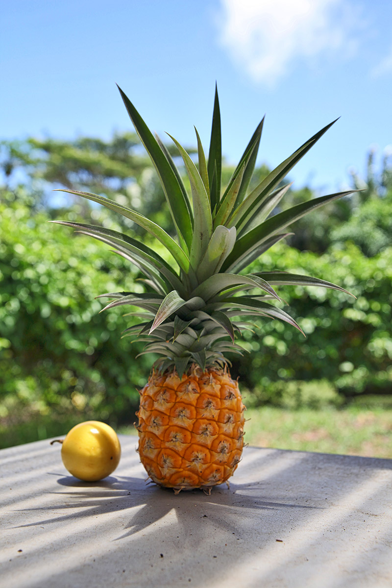 Home grown pineapple and lilikoi. Lilikoi has been scarce this summer. Lack of bees…