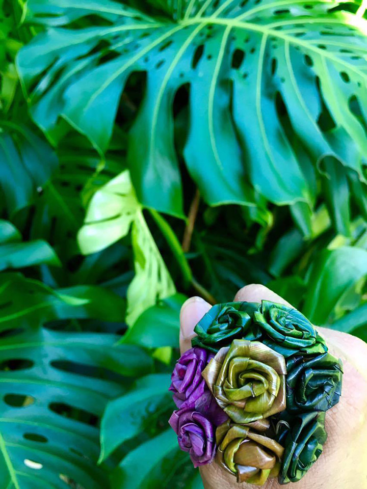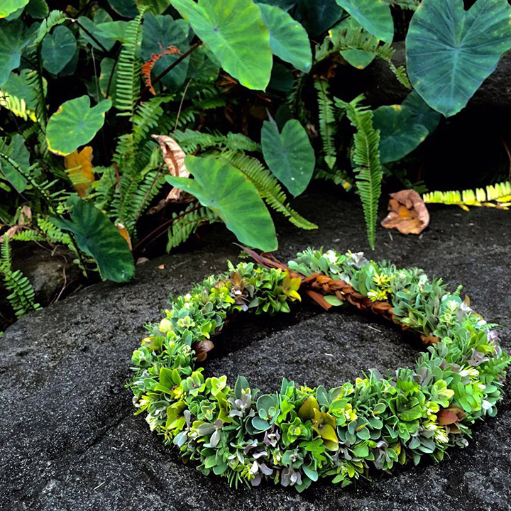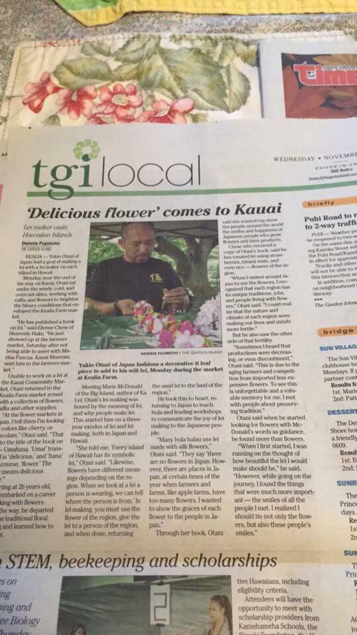 Japanese “delicious flower” Yukio Otani sensei is at Anekona on a lei-making retreat.