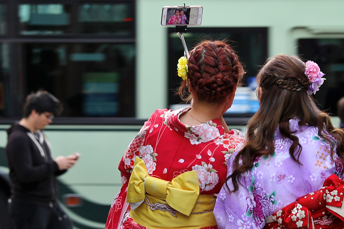 It’s like cosplay near Kiyomizu-dera. Busloads of tourists, mostly Asian start unloading from late morning.