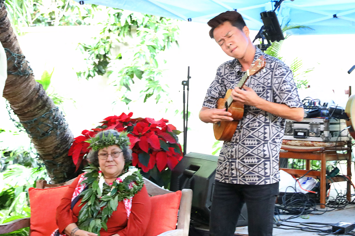Lei of Aloha, the fundraiser for Pā’ū O Hi’iaka halau, directed by Kumu Hula Hōkūlani Holt-Padilla featured art, food, dancing, and music. Louis from Osaka, played some heartfelt original compositions.