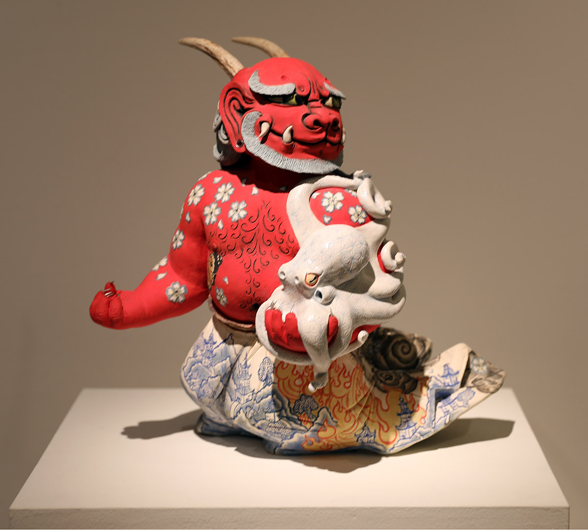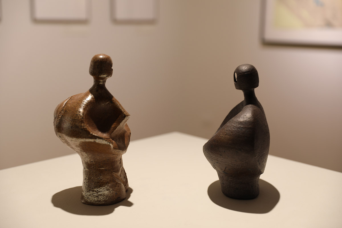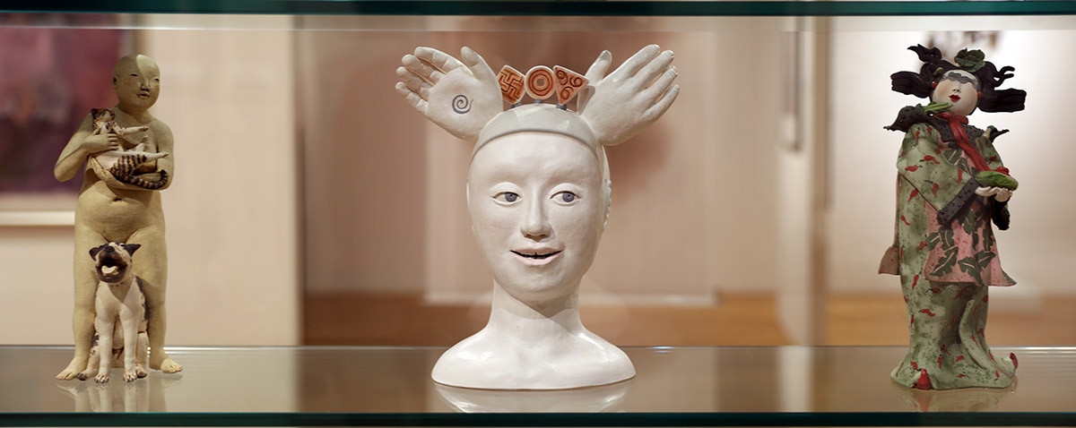 Claude Horan’s work from the 1990s. Jay Jensen asked Horan for a public wheel throwing demonstration at what was then the Honolulu Academy of Arts. Yukio Ozaki assisted by getting all the equipment and clay ready and helping Horan at the demo. Horan made several of these figures and took them home to fire. These two were purchased by the SFCA at his Claude Horan’s Retrospective.