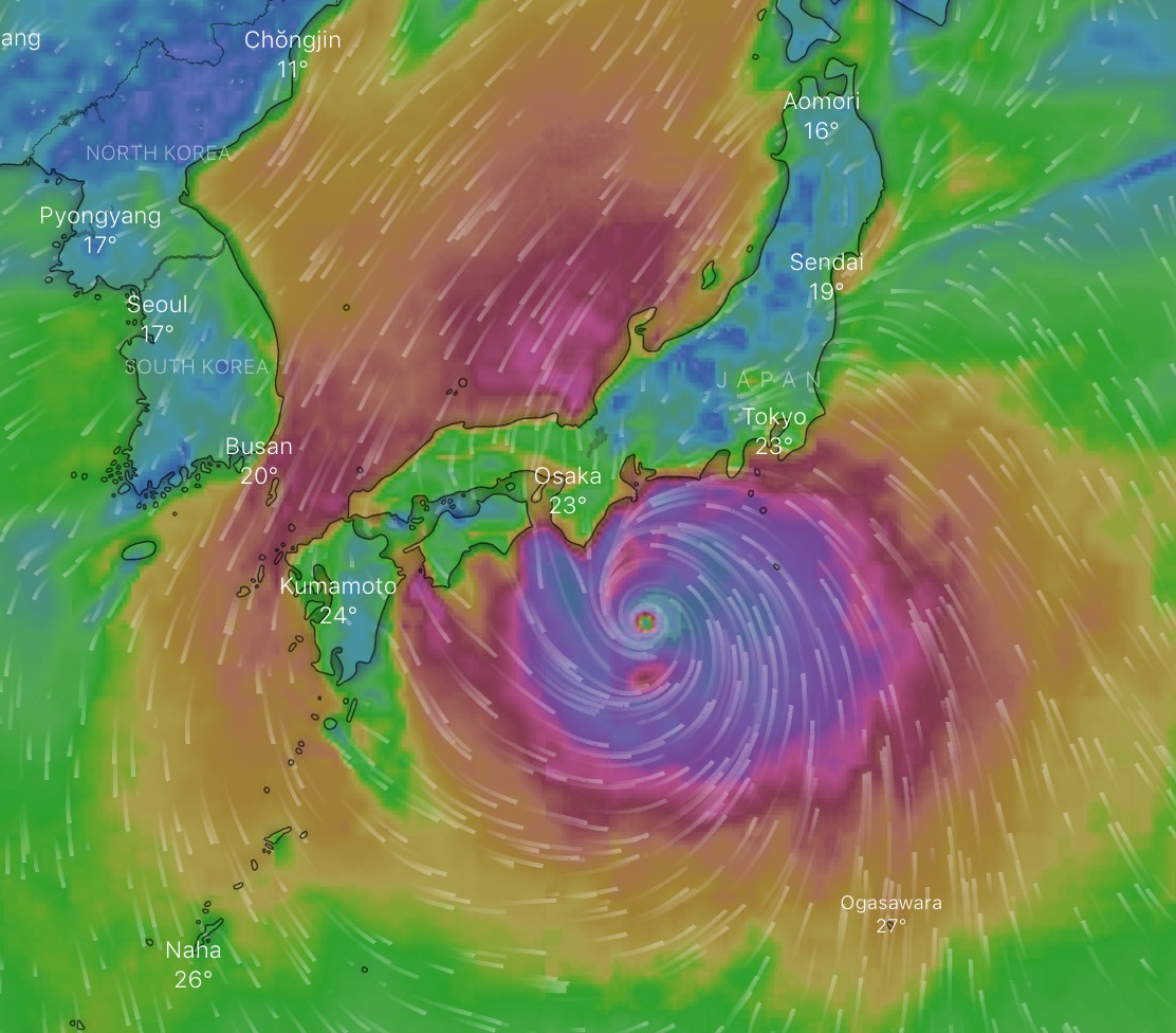 It came right up the east coast of Japan and passed Tokyo at midnight.
