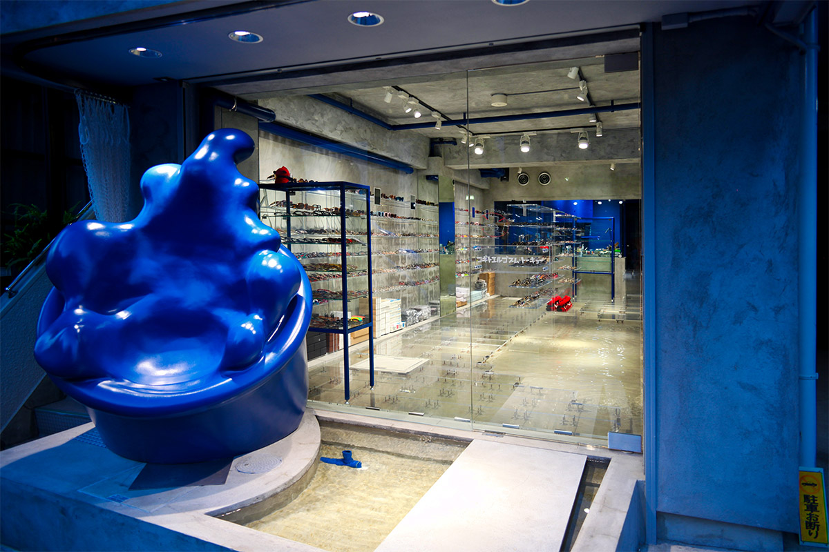This store sells eyeglasses. You see the water? It’s inside the store, too with acrylic walkways above it.
