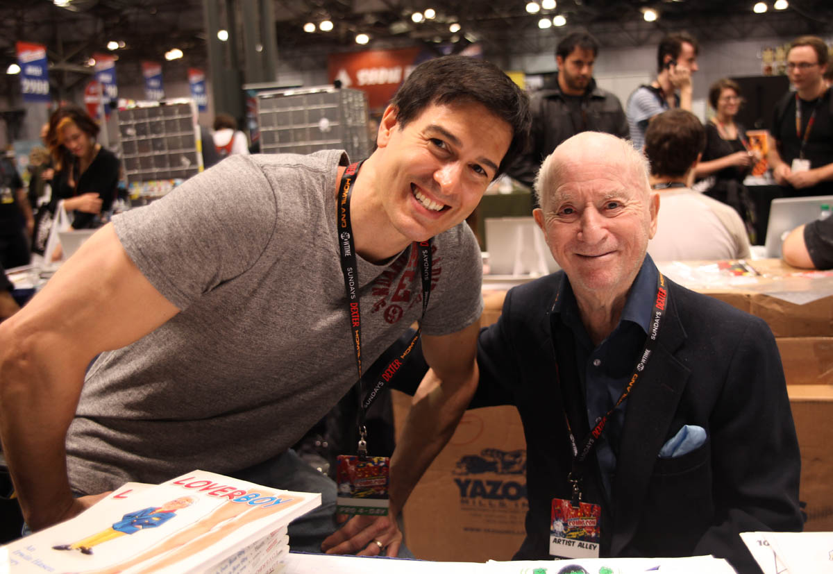 Here he is next to Irwin Hasen who owes his life to the vintage comic, Dondi. If you’re wondering, Jeff’s on the left, Mr. Hasen on the left.