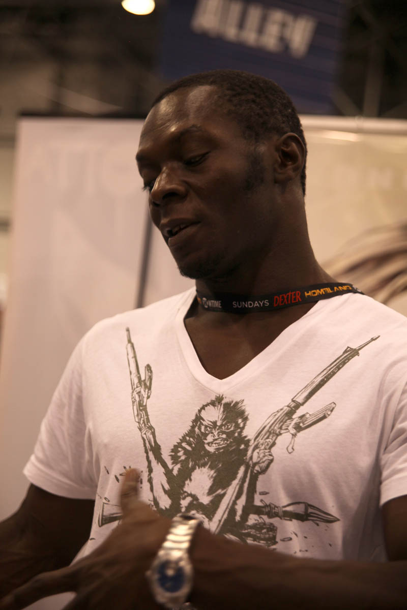 Dustin Wong models one of the two Dog Eaters t-shirts for New York Comicon.