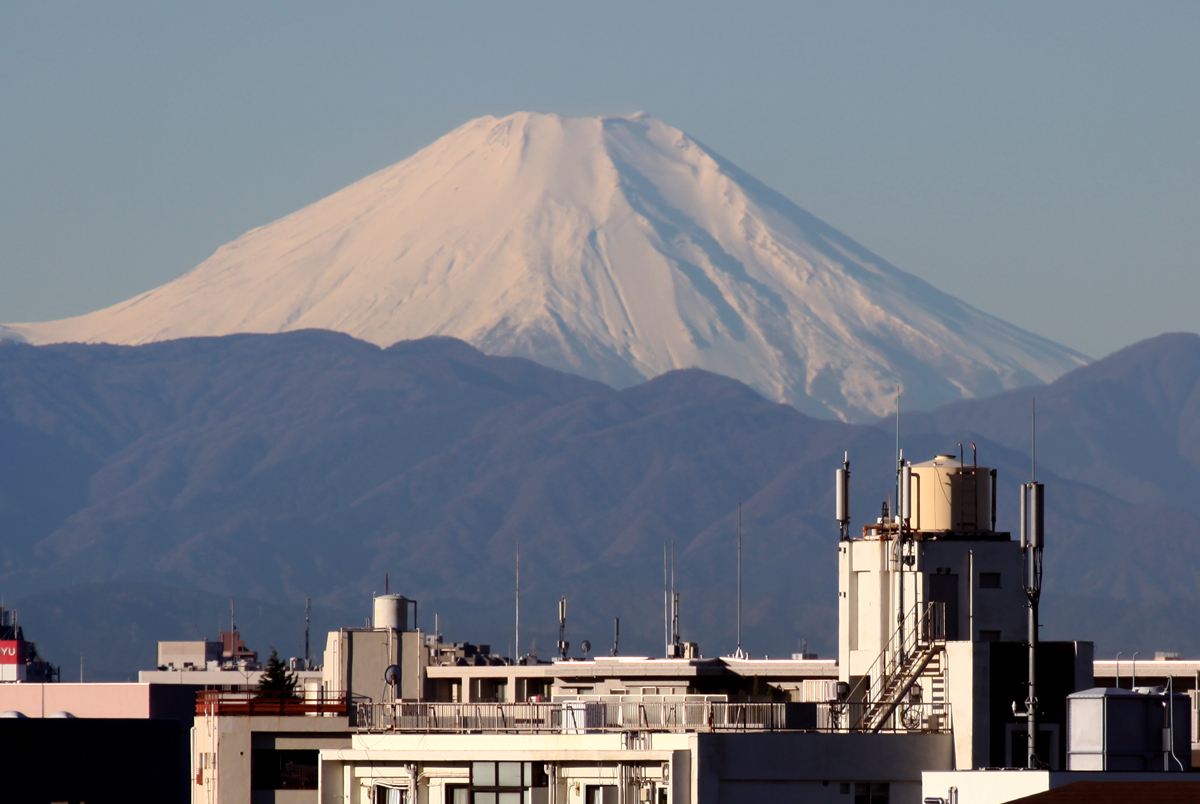 The view of Mt. Fuji from Nakano-ku, Tokyo.